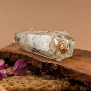 - Crafted with Moonstone and Orgonite, this pencil-shaped tower serves as a powerful tool for energy amplification and transformation, providing holistic benefits for mind, body, and spirit.
