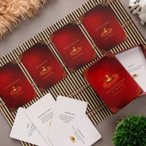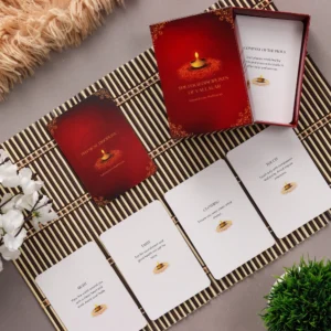 Delve into the timeless wisdom of Vallalar and embark on a journey of self-discovery, inner peace, and spiritual fulfillment with "The Four Disciplines of Vallalar Deck." Let each card inspire you to embody the teachings of Vallalar, guiding you towards a life of harmony, balance, and profound spiritual awakening.