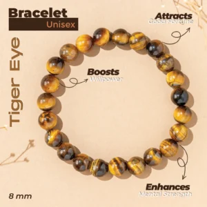 - The Tiger Eye stone aids in keeping the mind calm, enhancing creativity, and promoting mental clarity, helping the wearer to stay focused on their goals.